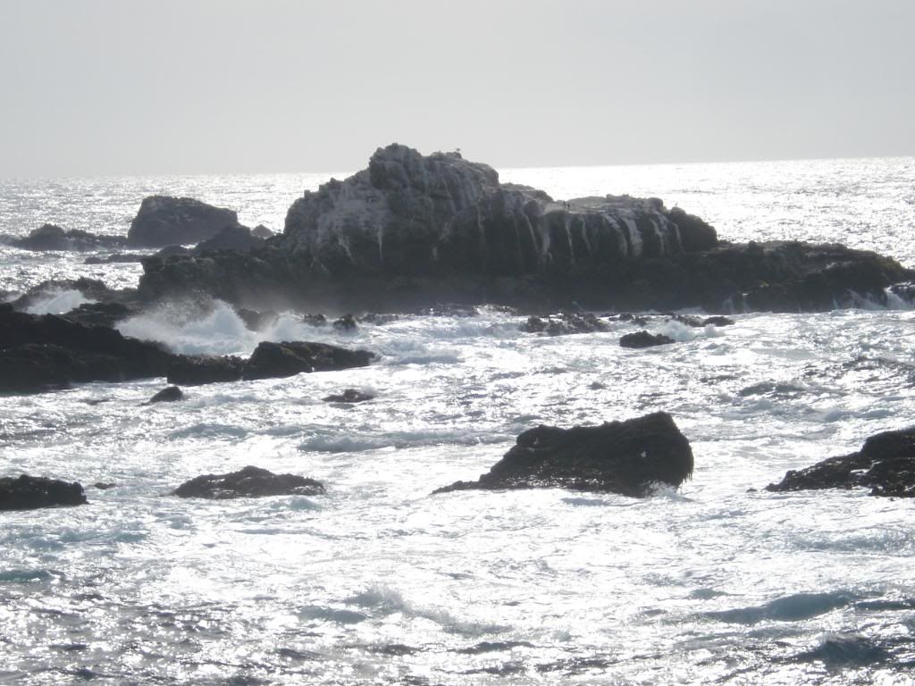 Answers: I was looking out at the water and I noticed this rock, and what appeared to be an enormous amount of bird dookie! I got real excited, I spilled my juice right there on the beach.